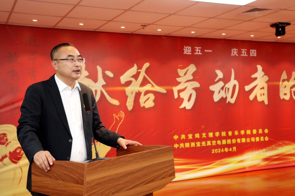 為深入學習宣傳貫徹習近平新時代中國特色社會主義思想和黨的二十大精神,切實營造尊重勞動、關愛青年的濃厚氛圍,在“五一”勞動節、“五四”青年節來臨之際,公司黨委與寶雞文理學院音樂學院黨委聯合開展“弘揚勞動精神 傳承工匠文化”道德講堂,為廣大干部職工送上了一場精彩紛呈的文化大餐。寶雞文理學院音樂學院黨委書記黃瑋、寶光股份黨委書記、董事長謝洪濤出席活動并致詞。