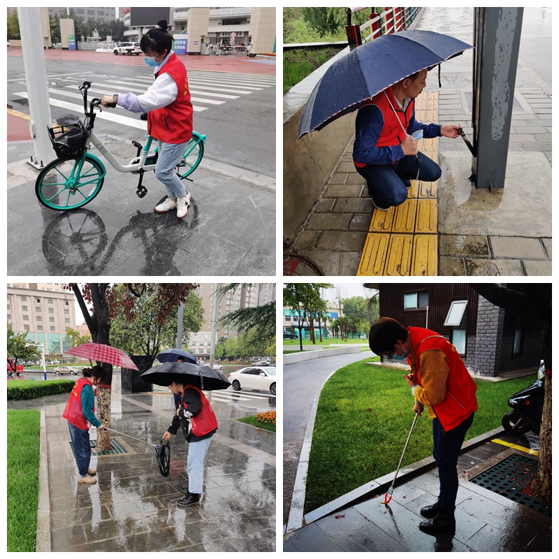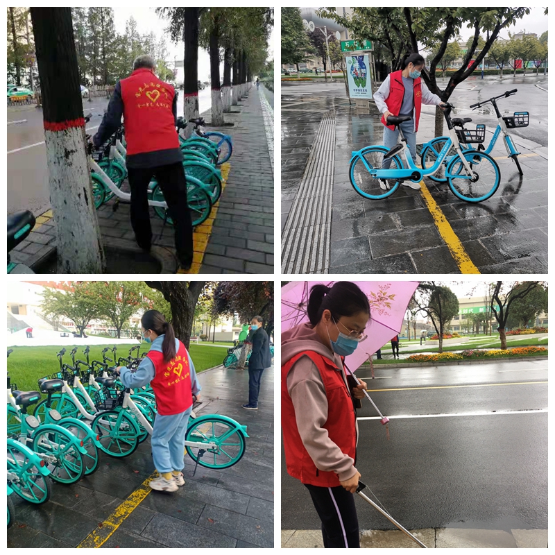 在近日連續(xù)強降雨的天氣里,志愿者們風雨無阻每天早上堅持7:30按時到崗開展志愿服務活動。他們身穿紅馬甲,手拿垃圾夾,冒雨沿著金渭大橋南至寶光路轉盤巡回開展志愿活動,認真地清理路面上的碎紙屑、飲料罐、煙頭等垃圾。同時將共享單車擺放在規(guī)定的區(qū)域內,保持整齊美觀和人行道路的通暢。