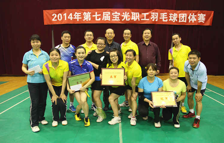 公司2014年度第七屆寶光職工羽毛球團體賽,共有10支代表隊參加比賽.比賽從11月24日晚開始,經過48場的角逐,于11月27日晚完成了所有比賽設定的項目,圓滿落下了戰幕。